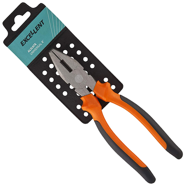• Alicate universal profissional • Fabricado em aço carbono de alta resistencia • Cabo ergonômico em PVC • Medida: 8″ • Tamanho: 210mm