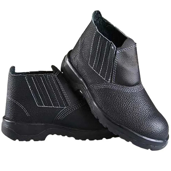 Botina de Segurança com solado antiderrapante, sem bico e com elástico, confeccionada em couro com curtimento atravessado, fechamento em elástico, forração em tecido não tecido transpirável, palmilha de montagem em E.V.A fixada/costurada junto ao cabedal , solado em PU densidade bicolor com sistema de absorção de impacto, injetado diretamente ao cabedal.