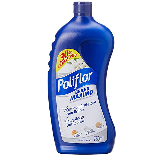 É muito bom entrar em um local e ver o piso limpinho e brilhando. Além da sensação de conforto, o cuidado correto dos pisos contribui para uma maior vida útil do espaço. A cera líquida Poliflor Brilho máximo 2 em 1 tem uma fórmula exclusiva para deixar seu chão impecável. Em uma embalagem com 750ml, o produto é de fácil aplicação e brilho natural que pode ser obtido facilmente com pano ou enceradeira. Sua fórmula anti-envelhecimento auxilia a vida útil dos pisos de Paviflex, cerâmica porosa, ardósia, assoalho sintético, cimento queimado e mármore. Além disso, deixa um perfume com fragrância suave no ambiente.