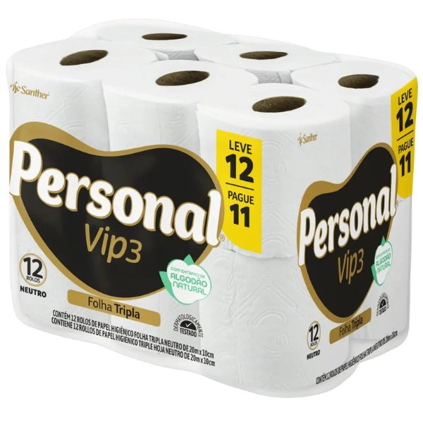 Papel Higiênico Folha Tripla Personal Vip3 12Rolos 20mt